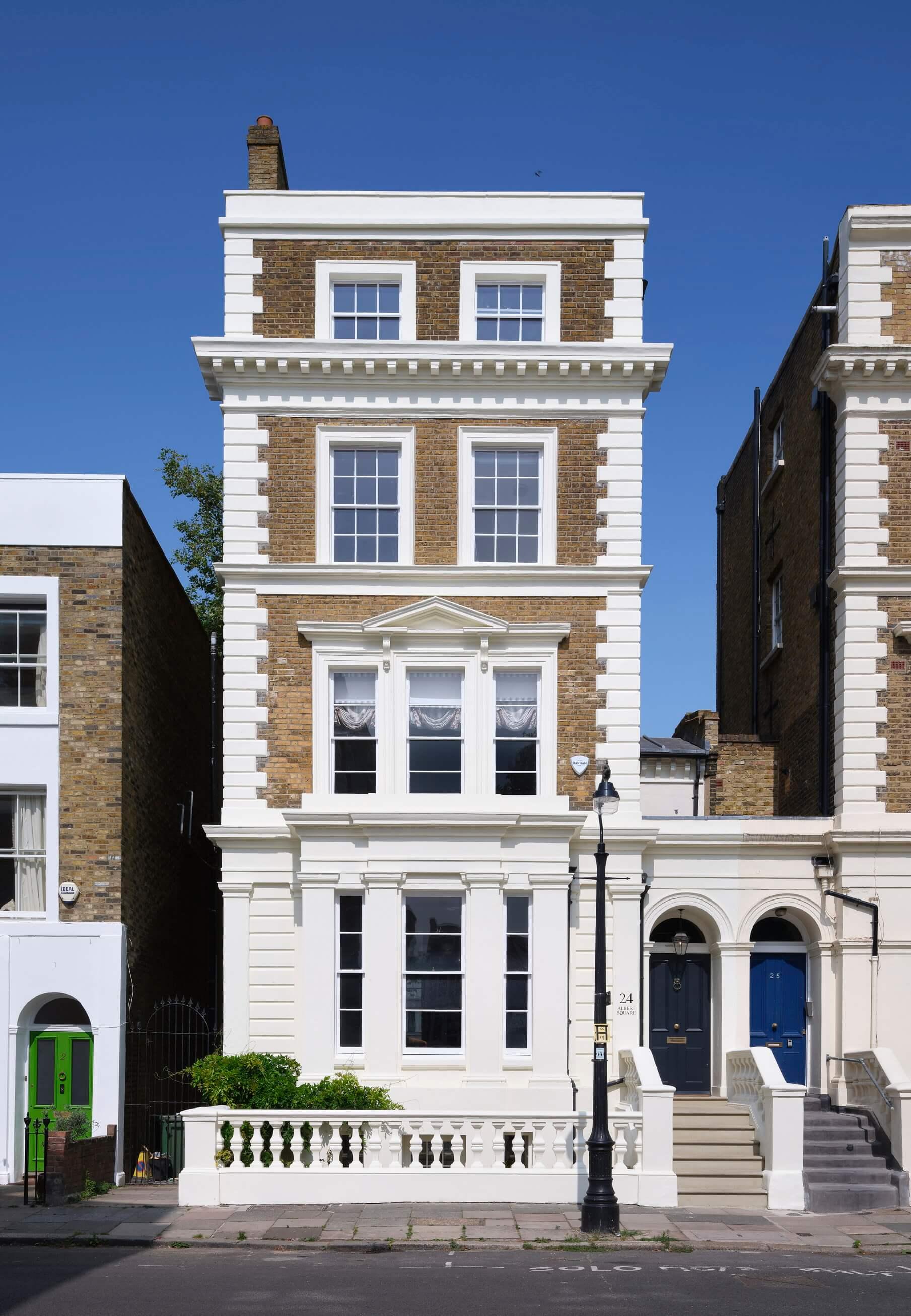 This full refurbishment of a grade two listed building required us to reinstate the period features, including cornices, architraves, and skirtings. A modern take on a traditional theme, also including one of our bespoke kitchens. The build incorporated a semi-basement excavation in order to create extra space to lower ground floor.